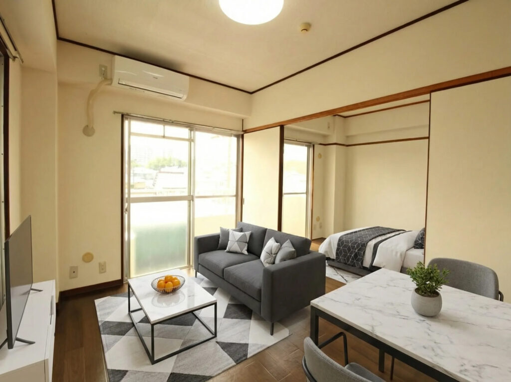 つまり、部屋の形や印象を変えずに、インテリアだけを最適化できるので、不動産広告でも使いやすい設計です。